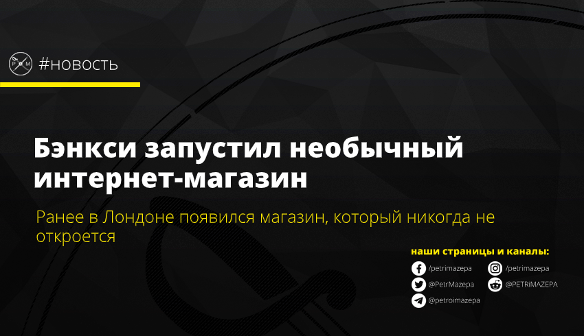 Стрит-арт художник из Лондона известный под ником Бэнкси объявил в своем инстаграме о открытии интернет-магазина «Gross Domestic Product» (Валовый внутренний продукт). Ранее он объявил об открытии шоурума, двери которого никогда не будут открыты.