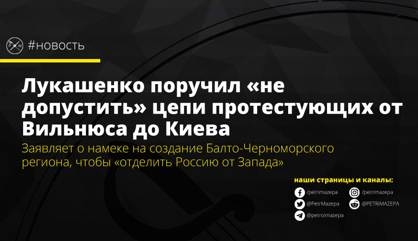 Александр Лукашенко поручил КГБ, МВД и Минобороны «категорически не допустить» создание живой цепи неравнодушных, которую по его данным собираются выстроить от Вильнюса до Киева. Причина такого недовольства – в том, что цепь по мнению Лукашенко намекает на создание Балто-Черноморского региона, «чтобы отделить Россию от Запада».