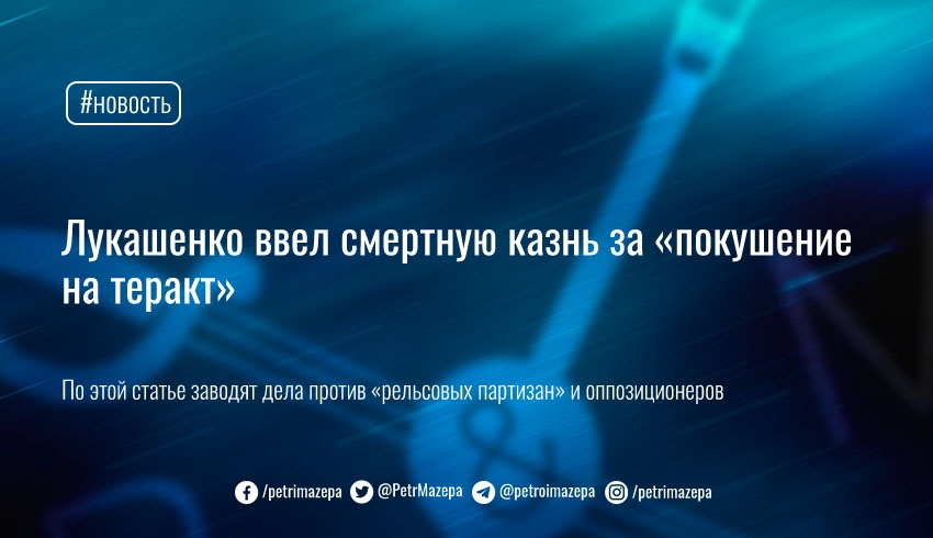 Лукашенко подписал закон, согласно которому в контролируемой его режимом Беларуси будет разрешено применять смертную казнь за «покушение на теракт» — в том числе и по той статье, которую используют для открытия уголовных дел против оппозиционеров и «рельсовых партизан» страны.