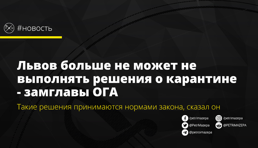 Львов больше не может не выполнять решения о карантине - замглавы ОГА