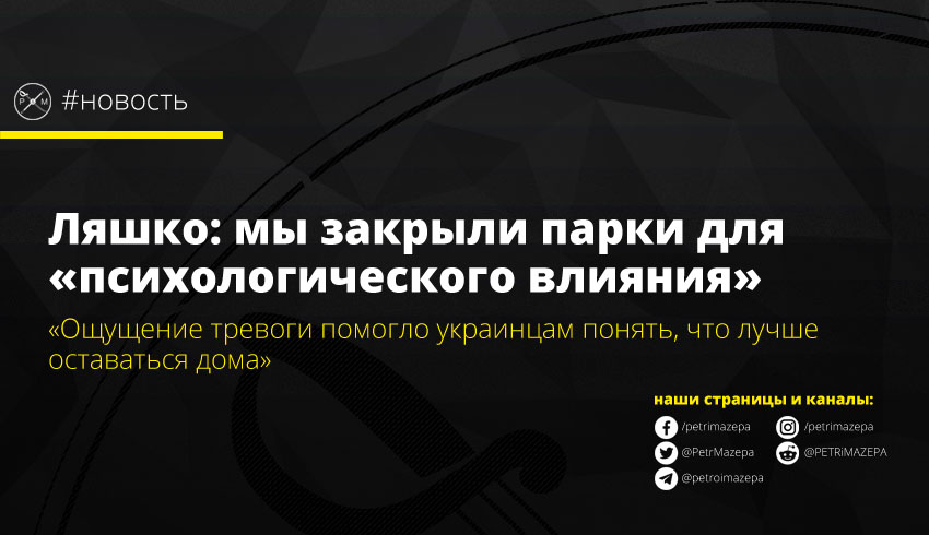 Главный санврач Украины Виктор Ляшко заявил, что парки были закрыты не столько для эпидемиологического, сколько для психологического эффекта, чтобы у людей не было ощущения безопасности, и они оставались дома.