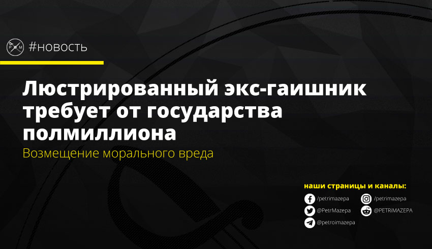 Экс-гаишник Вячеслав Косун, люстрированный по обвинению в причастности к преследованию активистов Революции Достоинства, подал иск о компенсации морального вреда на 500 тысяч гривен. Он хочет получить возмещение от государства за привлечение его к ответственности по делу о лишении прав активистов, так как в результате был оправдан судом.