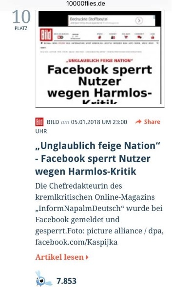 История эта получила в Германии широкий резонанс: её подхватил топовый немецкий журналист Юлиан Рёпке, который написал об этом статью в немецкой газете «Die Bild». Статья неожиданно вошла в топ-10 немецких новостей первой недели января 2018 года и вызвала бурную дискуссию о свободе слова.