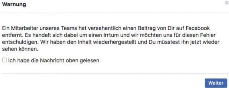 Редакция газеты «Die Bild» написала письмо в офис Facebook — ответом были извинения от Facebook в духе «один из наших сотрудников нечаянно перепутал» и восстановление поста на моей странице. Подробности этой истории можно почитать здесь.
