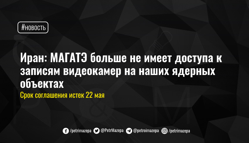 Согласно договору, доступ МАГАТЭ к камерам ядерных установок Ирана завершился 22 мая.