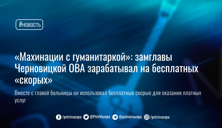 «Махинации с гуманитаркой»: замглавы Черновицкой ОВА зарабатывал на бесплатных «скорых»
