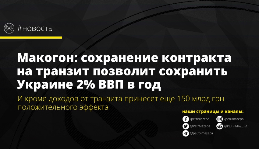Макогон: сохранение контракта на транзит позволит сохранить Украине 2% ВВП в год