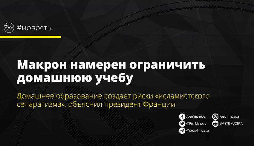 Президент Франции Эммануэль Макрон планирует сузить возможности получения образования дома - из-за рисков «исламистского сепаратизма».