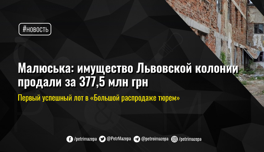 Министр юстиции Денис Малюська сообщил о первой продаже среди лотов «Большой распродажи тюрем». Имущество Львовской исправительной колонии №48 смогли продать, подняв по ходу торгов цену, чуть ли не в три раза.