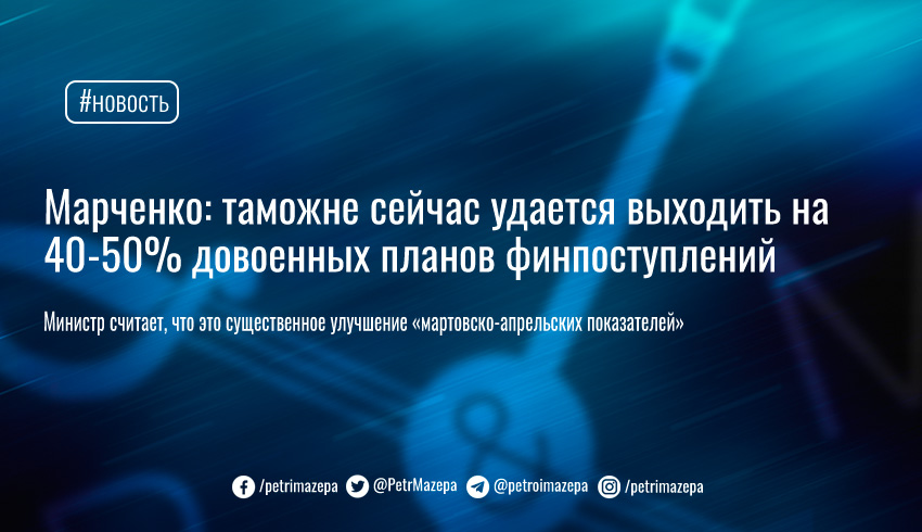 Марченко: таможне сейчас удается выходить на 40-50% довоенных планов финпоступлений