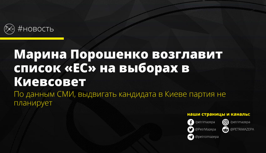 Список «Европейской солидарности» на выборах в Киевсовет возглавит супруга пятого президента Украины Марина Порошенко, сообщает «НВ».