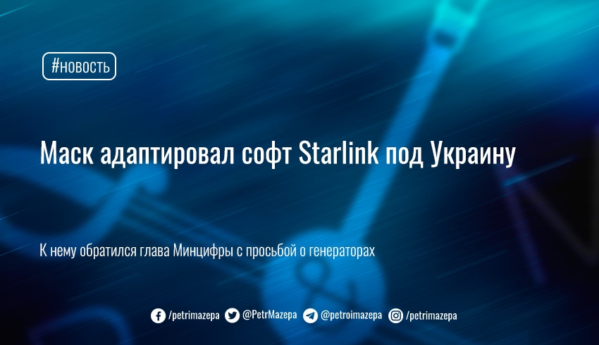 Ранее Федоров попросил генераторы, которые бы питали станции для Starlink в случае отключения электроэнергии - ввиду вторжения России. Он просил об этом и другие компании, в частности, Honda и Westinghouse, пишет ЕП.