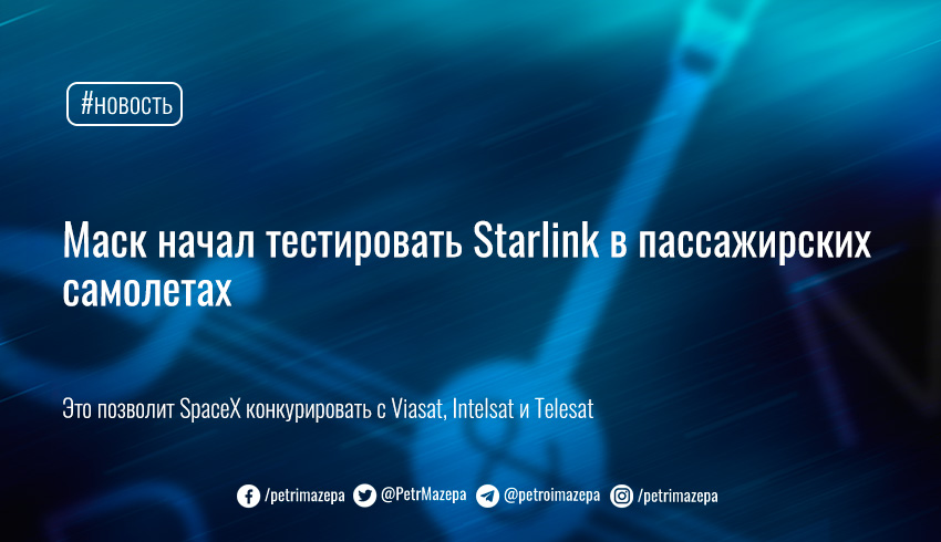 Американская компания SpaceX Илона Маска начала тестировать Starlink в пассажирских самолетах, заявил вице-президент по продажам Джонатан Хофеллер