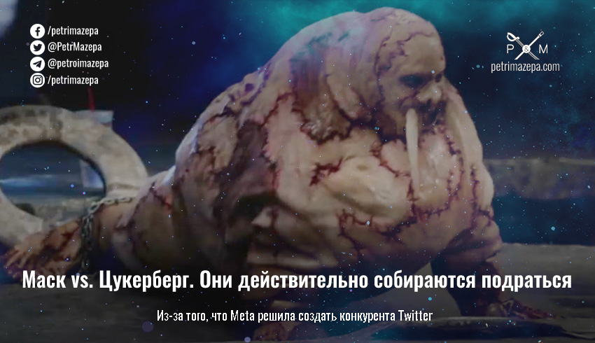 Почему все это происходит? Потому что Meta решила создать конкурента Twitter, и когда об этом узнал Маск, то стал дразнить Цукерберга в Twitter остротами типа «Zuck my».