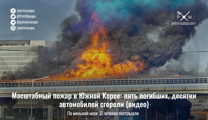 Масштабный пожар в Южной Корее: пять погибших, десятки автомобилей сгорели (видео)