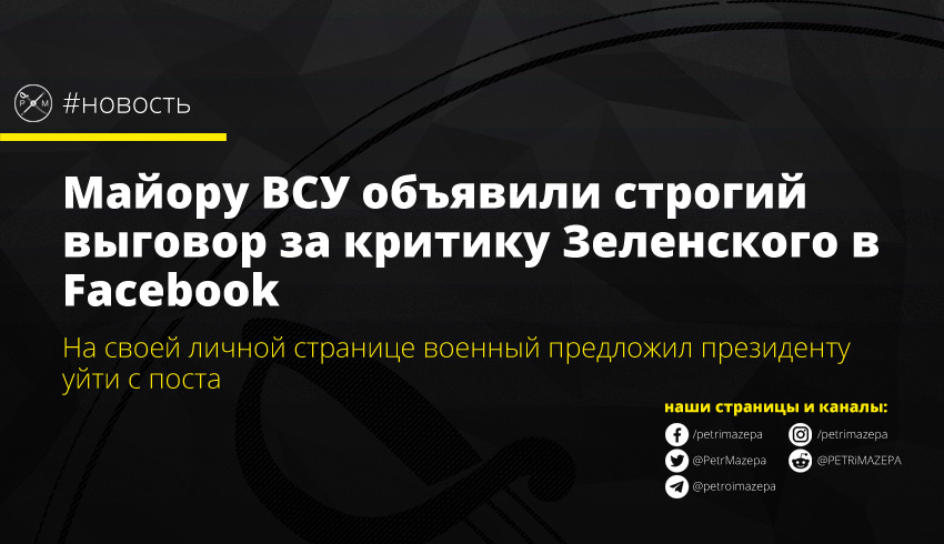 Майору ВСУ объявили строгий выговор за критику Зеленского в Facebook