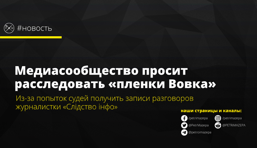 Медиасообщество «Медиа за осознанный выбор», куда входит ряд известных СМИ, призвало правоохранителей расследовать попытки судей Окружного административного суда Киева Павла Вовка и Евгения Аблова получить доступ к телефону журналистки программы «Слідство інфо» Евгении Моторевской.
