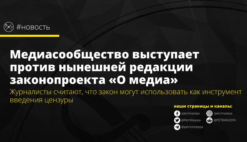 Журналистские и медийные организации, средства массовой информации и блогеры выступают против принятия законопроекта №2693 «О медиа». Представители медиаобщества настаивают на том, что закон нарушает право граждан на свободу слова.