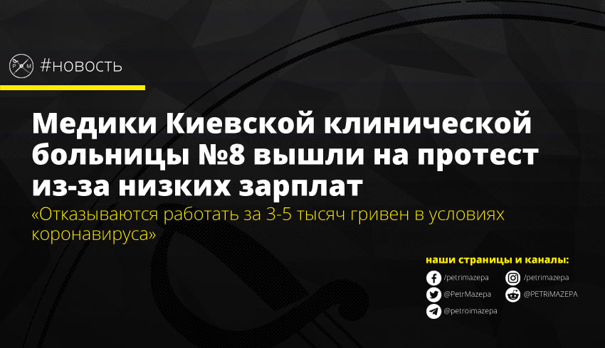 Как сообщается на Facebook-странице «Життя Мінського масиву — Оболонський район», персонал больницы вышел на протест, потому что отказывается работать за 3-5 тысяч гривен в условиях коронавируса. Сообщается, что больница приняла около 150 человек зараженных, однако врачи и медсестры при этом не получили доплат за работу с инфицированными.