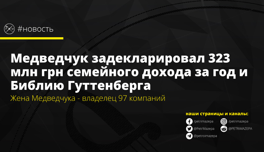 Медведчук задекларировал 323 млн грн семейного дохода за год и Библию Гуттенберга