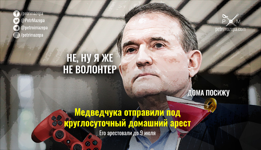 Главу политсовета пророссийской партии ОПЗЖ Виктора Медведчука Печерский районный суд Киева отправил под круглосуточный домашний арест до 9 июля.