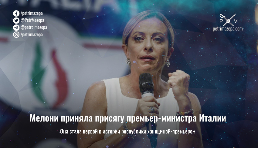 - Лидер ультраправой партии «Братья Италии», победившей на парламентских выборах в Италии, Джорджа Мелони пообещала президенту Владимиру Зеленскому «поддержку в деле свободы украинского народа».