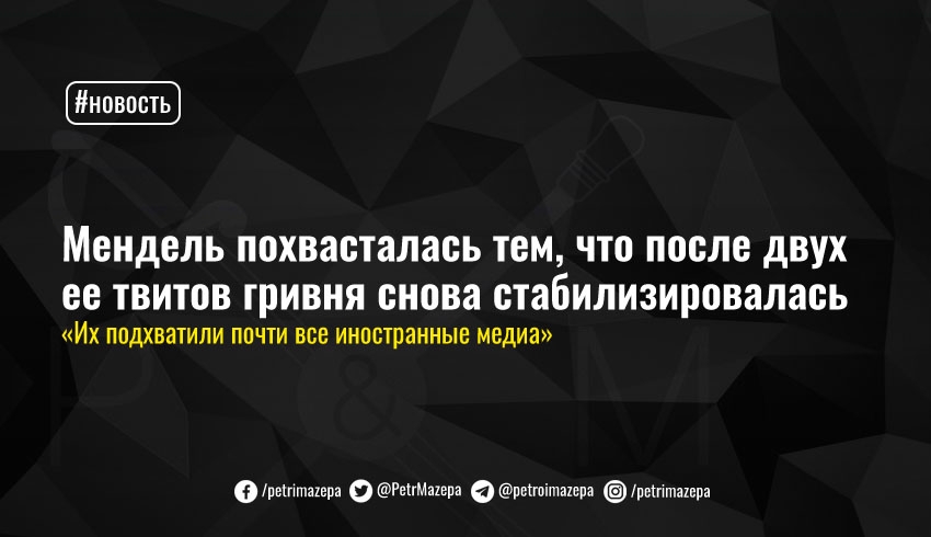 Мендель похвасталась тем, что после двух ее твитов гривня снова стабилизировалась