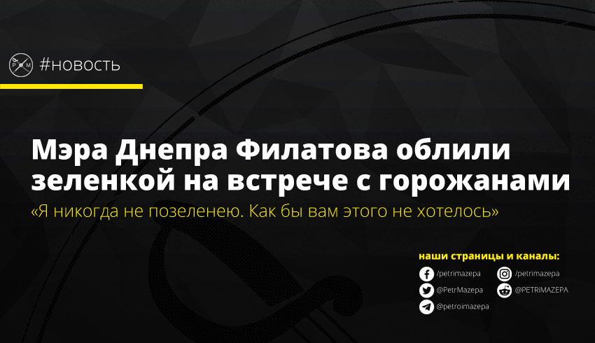 Городского голову Днепра Бориса Филатова облили зеленкой на встрече с жителями города. Об этом сам Филатов рассказал в Facebook.
