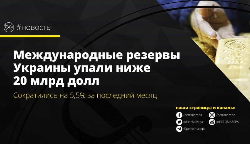 В июнь Украина вошла с международными резервами в размере 19 млрд 401 млн 600 тыс долл (в эквиваленте и по предварительным данным). За май наша «заначка» уменьшились на 5,5%, что связано в первую очередь со значительными объемами погашений по госдолгу.