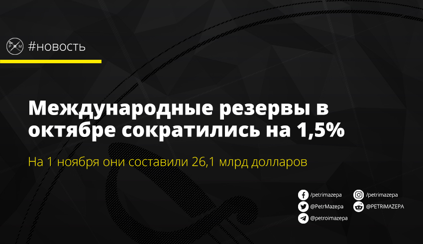 Как сообщает пресс-служба НБУ, в октябре резервы сократились на 1,5% - вследствие погашения внешних и внутренних обязательств государства и валютных интервенций.