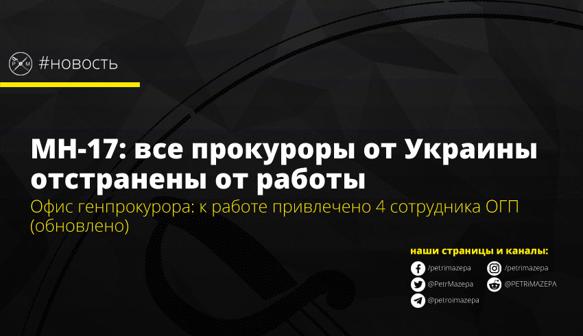 Об отстранении прокуроров рассказало нидерландское издание NRC Next, пишет «РБК-Украина». По данным СМИ, в последние месяцы в следственной группе не было ни одного прокурора от Украины, а Олеся Скрипник и Олег Пересада, которые входили в Совместную следственную группу, потеряли работу. И хотя по данным издания ситуация не повлияет на судебный процесс, который должен начаться над четырьмя подозреваемыми уже 9 марта, оно может помешать дальнейшему расследованию касательно других подозреваемых – в частности, один из прокуроров считает, что на ознакомление новых следователей с документами уйдет не меньше года.