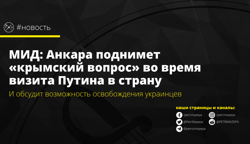 Министр иностранных дел Украины Вадим Пристайко после телефонного разговора с министром иностранных дел Турции Мевлутом Чавушоглу написал в своем Twitter-аккаунте, что сегодня Турция поднимет вопрос деоккупации Крыма и освобождения украинских граждан, которые незаконно удерживаются в России и на оккупированных территориях.