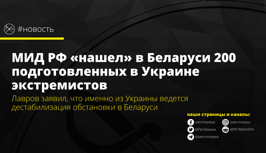 «По нашим оценкам, порядка 200 экстремистов, натренированных на украинской территории» сейчас находятся в Беларуси, сообщил Лавров. И добавил, что подготовку «экстремисты» проходили в Волынской и Днепропетровской областях в специальных лагерях.