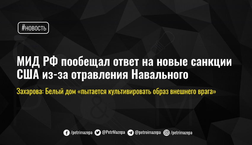 Официальный представитель МИД России Мария Захарова пообещала, что Москва не станет временить с публикацией своего стоп-лист в ответ на последние санкции США в отношении РФ. Она считает, что ситуация с «отравлением» Навального «боевыми химикатами» - лишь повод для вмешательства во внутренние дела страны.