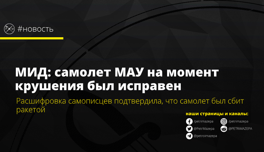Об этом сообщает Интерфакс-Украина со ссылкой на МИД. «Оба ящики были успешно расшифрованы, несмотря на то, что в них были признаки серьезного внешнего повреждения. Важно то, что расшифровка подтвердила, что самолет был исправен, пилоты все делали правильно. В то же время черные ящики подтвердили, что самолет упал вследствие акта незаконного внешнего вмешательства, а именно был сбит ракетой», - сообщили в ведомстве.