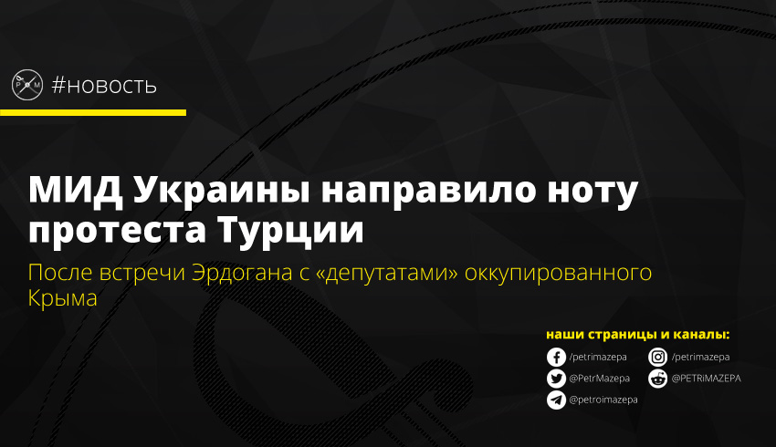 В украинском МИДе отметили, что встреча президента Турецкой Республики Реджепа Эрдогана с политиками, незаконно избранными на оккупированной территории Украины, вызывает беспокойство. В связи с произошедшим, Украина уже направила ноту протеста Турции, передает пресс-служба ведомства. Также уточняется, что в МИД пригласили посла Турции.