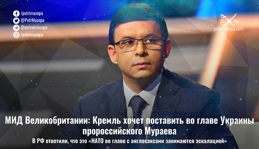 «У нас есть информация, указывающая, что, принимая решение о возможном вторжении и оккупации Украины, правительство РФ пытается привести к власти в Киеве пророссийского лидера. В качестве потенциального кандидата рассматривают бывшего депутата Евгения Мураева», - сообщает МИД Великобритании.