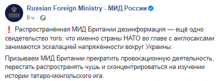 В МИД РФ со своей обычной «дипломатичностью» заявили, что публикация МИД Великобритании – «ещё одно свидетельство того, что именно страны НАТО во главе с англосаксами занимаются эскалацией напряжённости вокруг Украины». А также призвали «перестать распространять чушь и сконцентрироваться на изучении истории татаро-монгольского ига». Зачем мордво-бурятам популяризировать историю татар и монголов на уровне министерства – непонятно.
