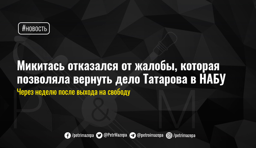 Микитась отказался от жалобы, которая позволяла вернуть дело Татарова в НАБУ