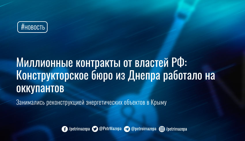Служба безопасности Украины раскрыла в Днепре крупное конструкторское бюро, которое по заказу правительства РФ занималось модернизацией энергетической инфраструктуры оккупированного Крыма. Чтобы обойти украинское законодательство, преступники создали компании в РФ, под прикрытием которых получали контракты от властей России на миллионы долларов.