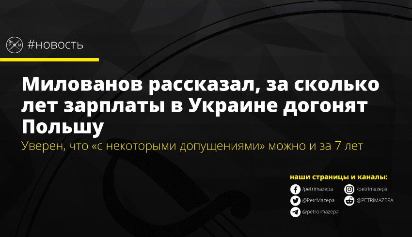 Глава Минэкономразвития, торговли и сельского хозяйства Украины Тимофей Милованов привел «статистику дня» - за сколько лет зарплаты в Украине могут догнать польские. По его подсчетам, догонять еще долго, но сделать это реально.