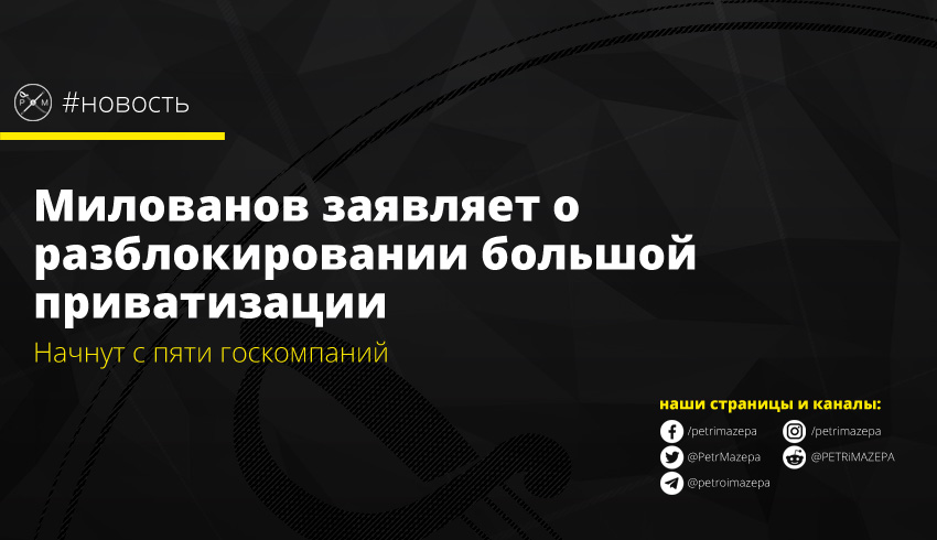Министр развития экономики, торговли и сельского хозяйства Украины Тимофей Милованов согласовал представление на инвестиционных советников от Фонда государственного имущества (ФГИ). По его словам, если не произойдет непредвиденных ситуаций, подготовка к приватизации пяти крупных госкомпаний должна начаться уже через несколько дней.