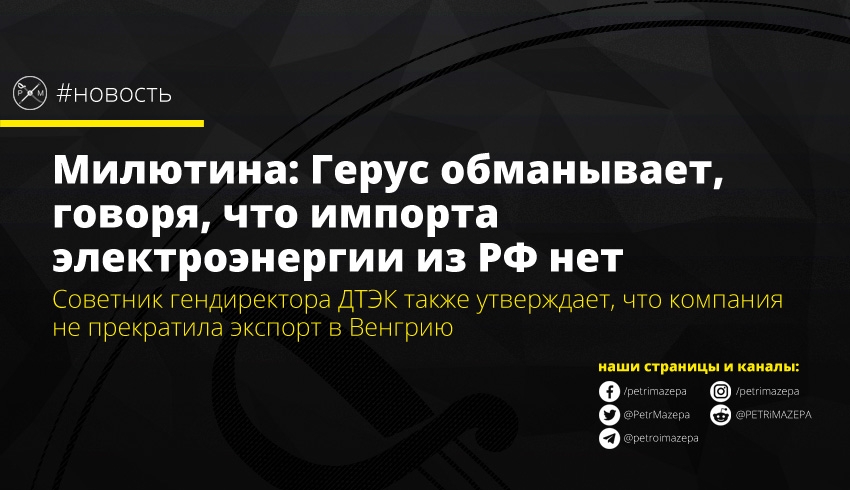 Советник гендиректора ДТЭК Ирина Милютина на своей странице в Facebook сообщила о трех свежих случаях, в которых глава энергетического комитета Верховной рады Андрей Герус сказал неправду. Речь идет о его словах про отсутствие импорта российской электроэнергии, прекращение экспорта электроэнергии в Венгрию компанией ДТЭК и «самые высокие цены в Европе».
