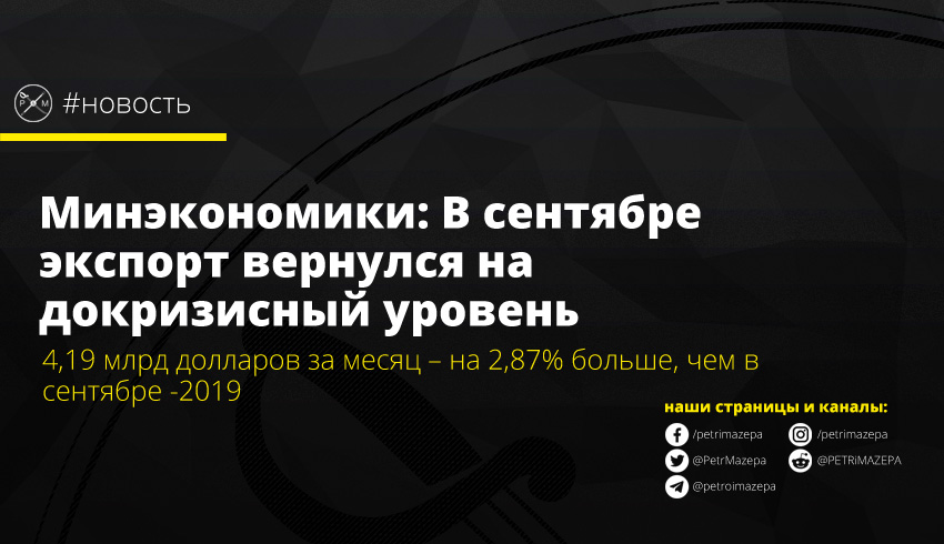 «Экспорт в сентябре составил 4,19 млрд долларов. Это на 2,87% больше, чем в сентябре прошлого года. В общем третий квартал стал кварталом восстановление торговли - экспорт за три предыдущих месяца составил 12,14 млрд долларов, что на 13,66% больше, чем во втором квартале», - написал он в Facebook.