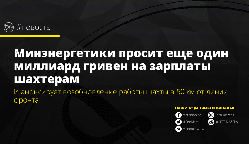 Минэнергетики просит еще один миллиард гривен на зарплаты шахтерам