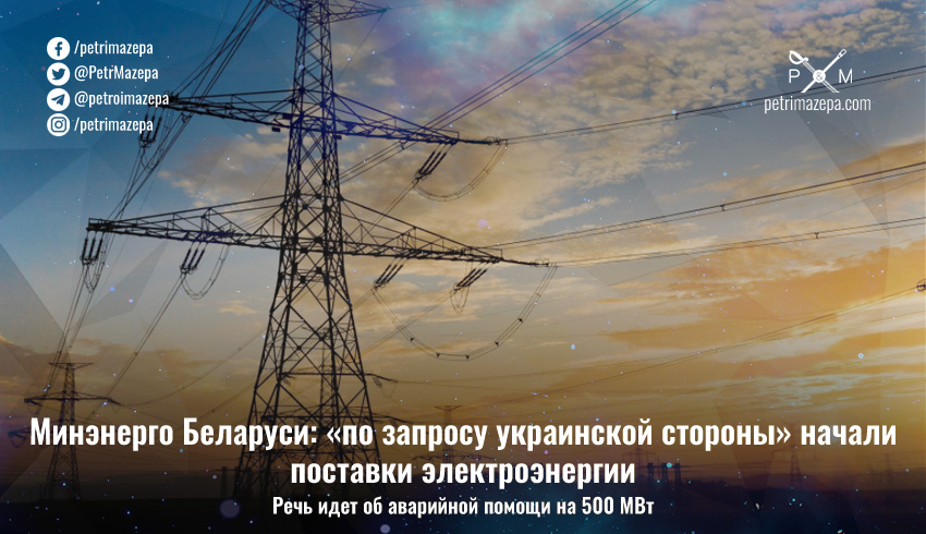Пресс-служба Минэнерго Беларуси сообщило, что страна поставит Украине 500 МВт электроэнергии в рамках аварийной помощи.