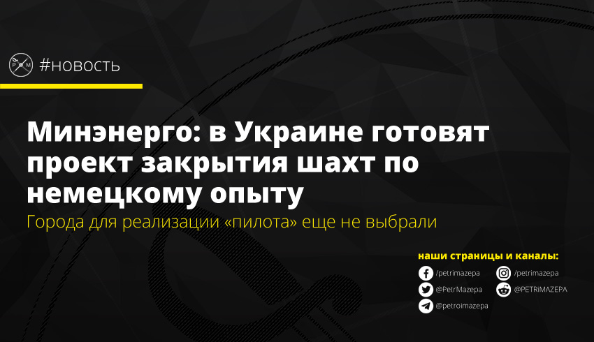Министерство энергетики и защиты окружающей среды разрабатывает пилотный проект по закрытию шахт в одном из городов по немецкому опыту. Пока что перечень городов, в которых реализуют пилот, не определен. Пилотный проект будет реализован как для решения социальных, экологических вопросов и для обеспечения работой людей, проживающих в таких моногородах.