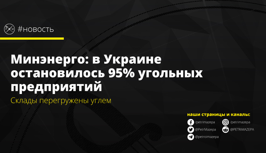 По данным Министерства энергетики и защиты окружающей среды Украины, около 95% угольных предприятий остановились из-за кризиса в энергетике.