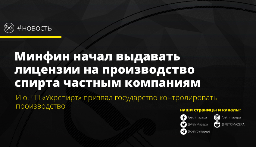 Министерство финансов выдало первые лицензии на производство спирта частным компаниям. Об этом сообщил и.о. главы государственного предприятия «Укрспирт» Сергей Блескун. Он отметил, что именно это является примером того, как работает рынок.