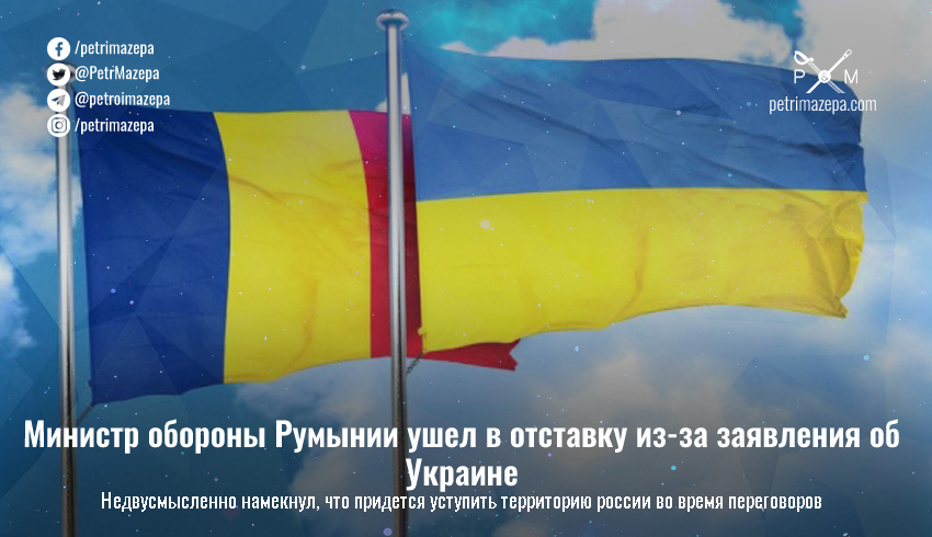 Министр обороны Румынии Василе Дынку подал в отставку. Поводом стало его заявление, в котором он незамысловато намекнул, что Украине, возможно, придется уступить территорию россии во время переговоров.